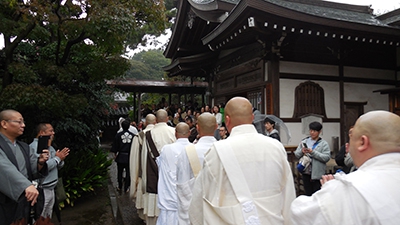 江戸幕末期、激動する国内外の難局に対応するため、天皇家と幕府が協力し合い「公武合体」と云う方針が生じました。 その一環の動きとして、将軍家より尊崇されていた遠壽院の表堂奉安の鬼子母尊神像が、 東海道を幕府警護のもと大行列で京に上り、京都御所禁裏において当時の孝明天皇、また後の明治天皇となる睦仁親王が尊神を御親拝になられました。