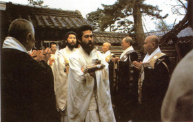 「武士の魂-華(はな)、心、剱(つるぎ)-」と題したチャリティー公演の中で、オープニングに800人の大観衆の前で読経と祈祷を行いました。