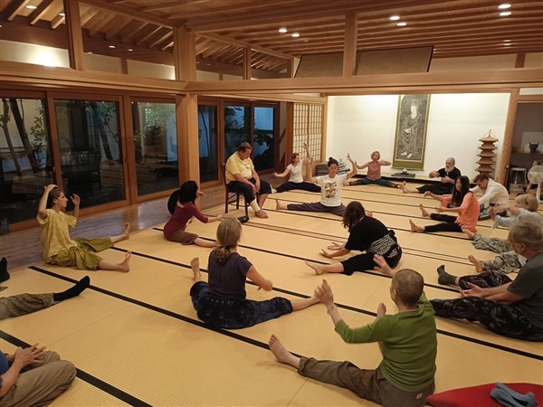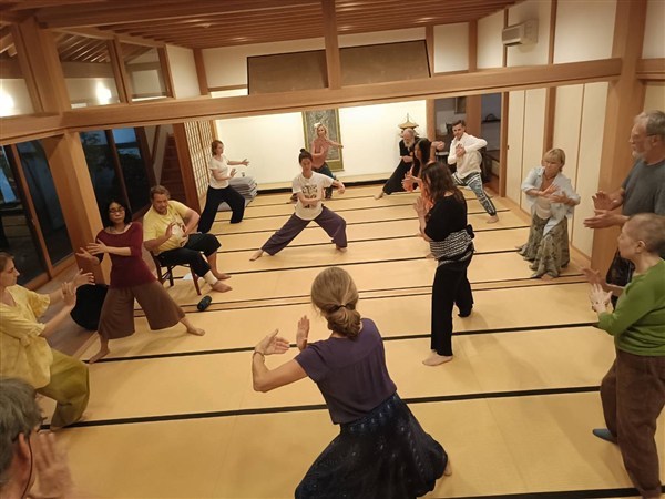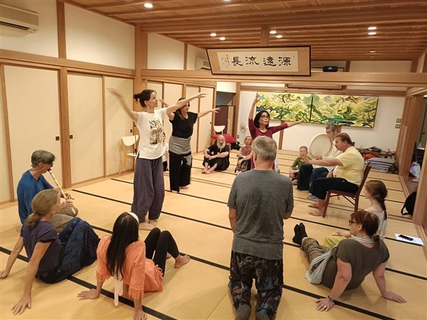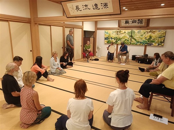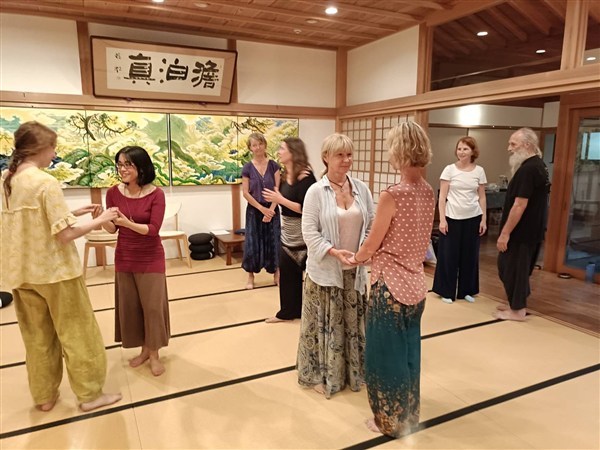 令和7(2025)年9月5日、ドイツを本拠地とする総合身体技法の会「el haddhawi」(エル・ハダウィ)一行13名が遠寿院を訪れ、日本側参加者と合わせて計20名で終日ワークショップが行われました。