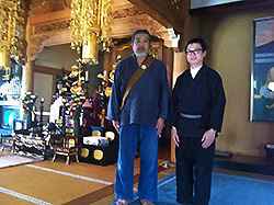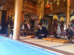 2012年9月14日(金)、武家を中心に嗜まれていた茶道で、小堀遠州を祖とする壺月遠州流の中村如栴(にょせん)家元が縁あって来山され、本堂において「仏前献茶の儀」が営まれた。 住職等による読経のもと、質素にして荘厳さを持つ当流の作法は、いかにも武人の御点前といった雰囲気を醸しだしていた。 仏道と茶道の融合された世界が現れ、参列者一同、清浄なる一時を過ごしました。