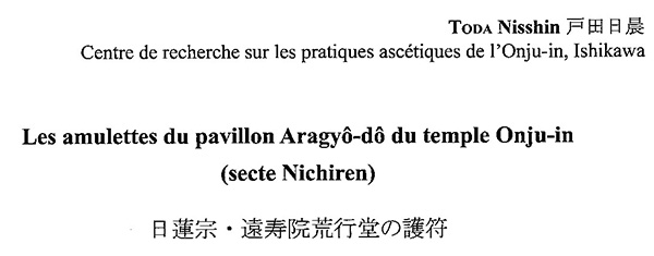 論文『日蓮宗・遠壽院荒行堂の護符』