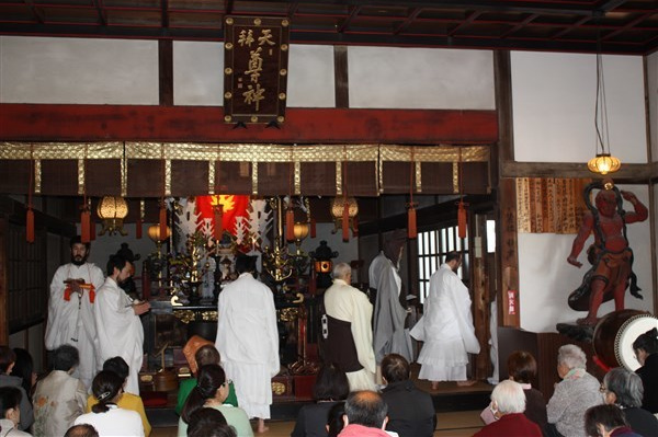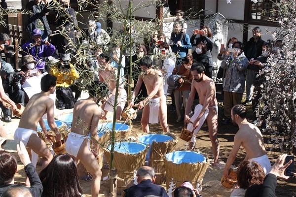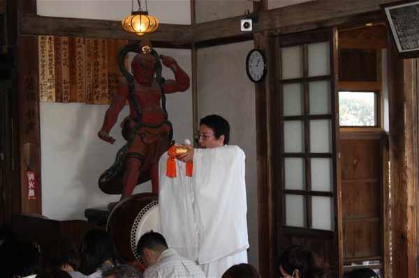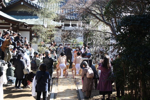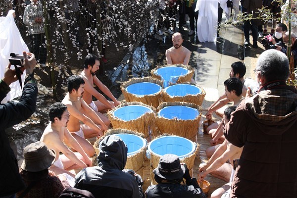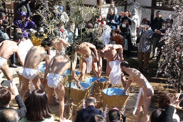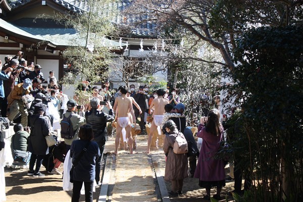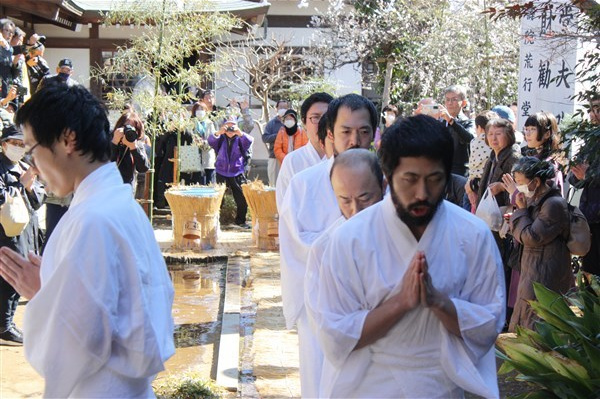 大荒行を成満した行僧たちは、2月18日再び当山へ戻ってくる。そして鬼子母神へ無事に成満したことの報告を兼ねて水行する。