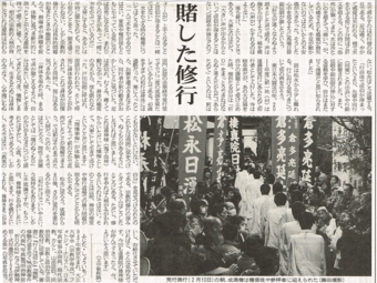 共同通信の松森記者が当山の大荒行について記事にしております。
